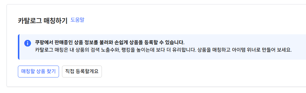 바로 상품등록에 들어가면 상단에 매칭할 상품찾기에 상품url을 넣어 아이템위너를 가져올 상품을 지정하여